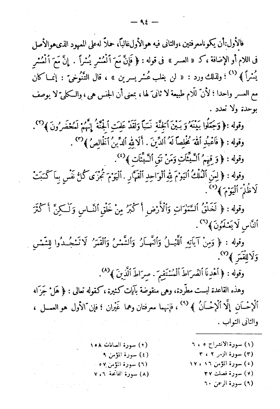 وَهَذِهِ الْقَاعِدَةُ لَيْسَتْ مُطَّرِدَةً وَهِيَ مَنْقُوضَةٌ بِآيَاتٍ كَثِيرَةٍ كَقَوْلِهِ تَعَالَى: {هَلْ جَزَاءُ الْإِحْسَانِ إِلَّا الإحسان} فَإِنَّهُمَا مَعْرِفَتَانِ وَهُمَا غَيْرَانِ فَإِنَّ الْأَوَّلَ هُوَ الْعَمَلُ وَالثَّانِي الثَّوَابُ
