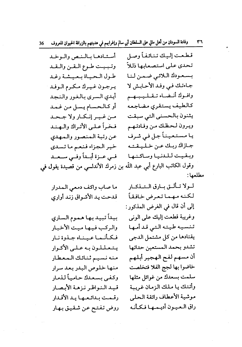 وَقَول الْكَاتِب البارع أبي عبد الله بن زمرك الأندلسي من قصيدة يَقُول فِي مطْلعهَا