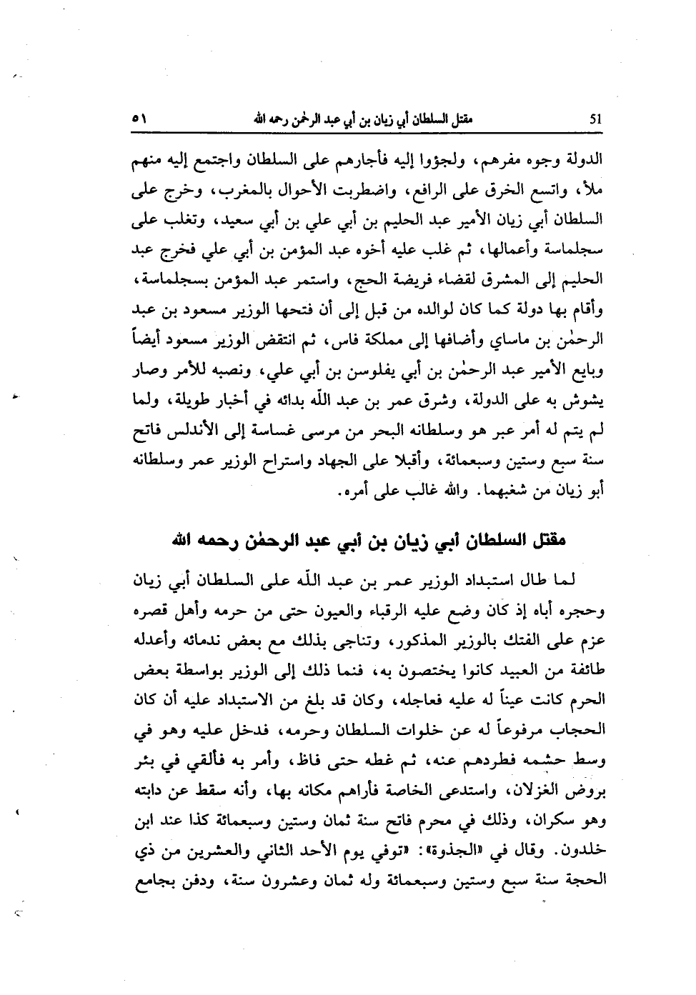 مقتل السُّلْطَان أبي زيان بن أبي عبد الرَّحْمَن رَحمَه الله
