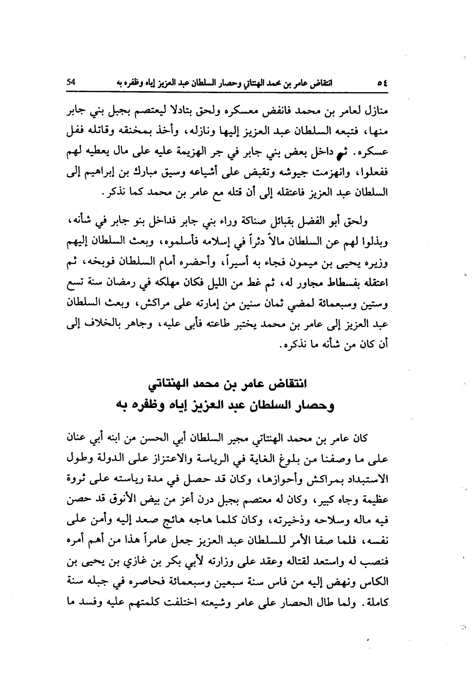 انْتِقَاض عَامر بن مُحَمَّد الهنتاتي وحصار السُّلْطَان عبد الْعَزِيز إِيَّاه وظفره بِهِ