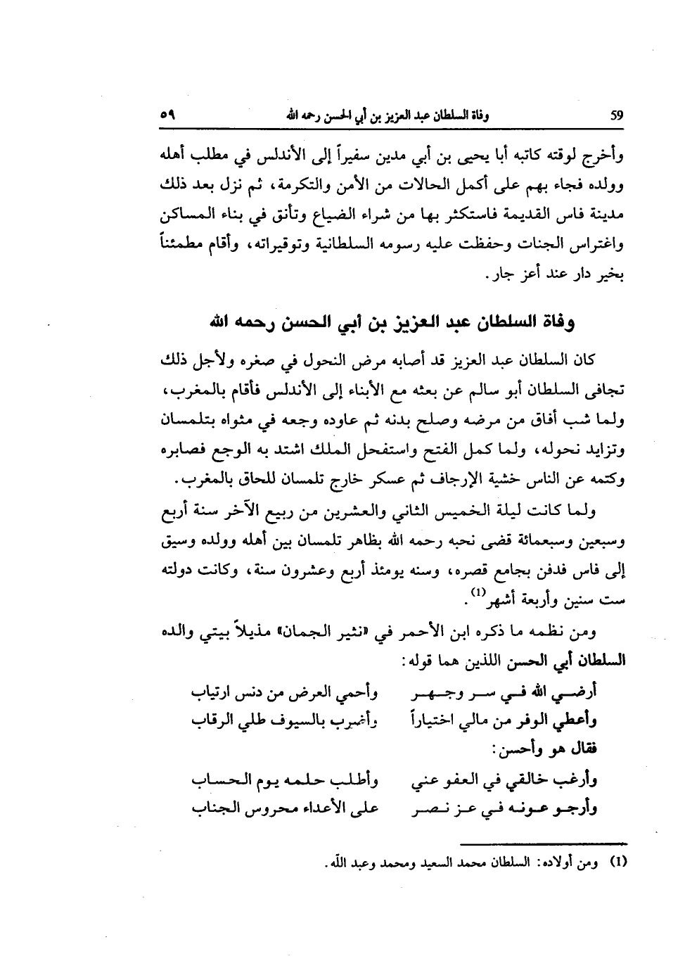 وَفَاة السُّلْطَان عبد الْعَزِيز بن أبي الْحسن رَحمَه الله