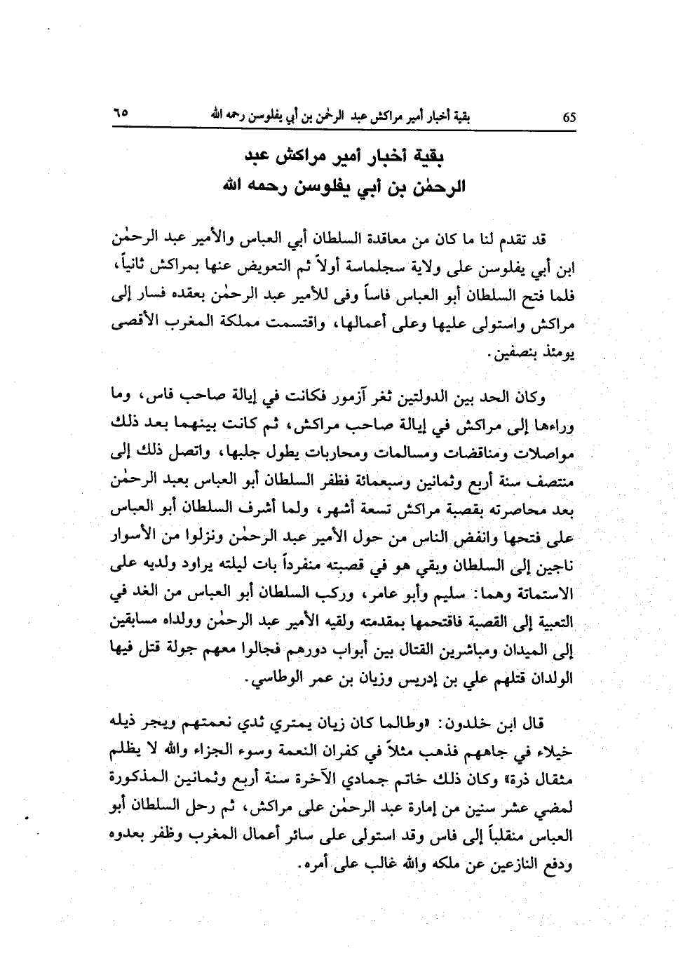 بَقِيَّة أَخْبَار أَمِير مراكش عبد الرَّحْمَن بن أبي يفلوسن رَحمَه الله