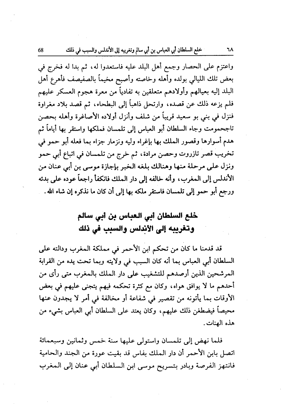 خلع السُّلْطَان أبي الْعَبَّاس بن أبي سَالم وتغريبه إِلَى الأندلس وَالسَّبَب فِي ذَلِك