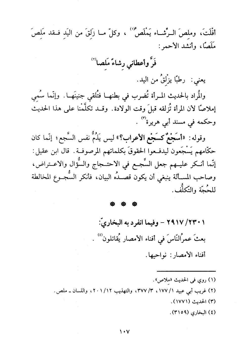 وَالْمرَاد بِالْحَدِيثِ الْمَرْأَة تضرب فِي بَطنهَا فتلقي جَنِينهَا. وَإِنَّمَا سمي إملاصا لِأَن الْمَرْأَة تزلقه قبل وَقت الْولادَة. وَقد تكلمنا على هَذَا الحَدِيث وَحكمه فِي مُسْند أبي هُرَيْرَة.
