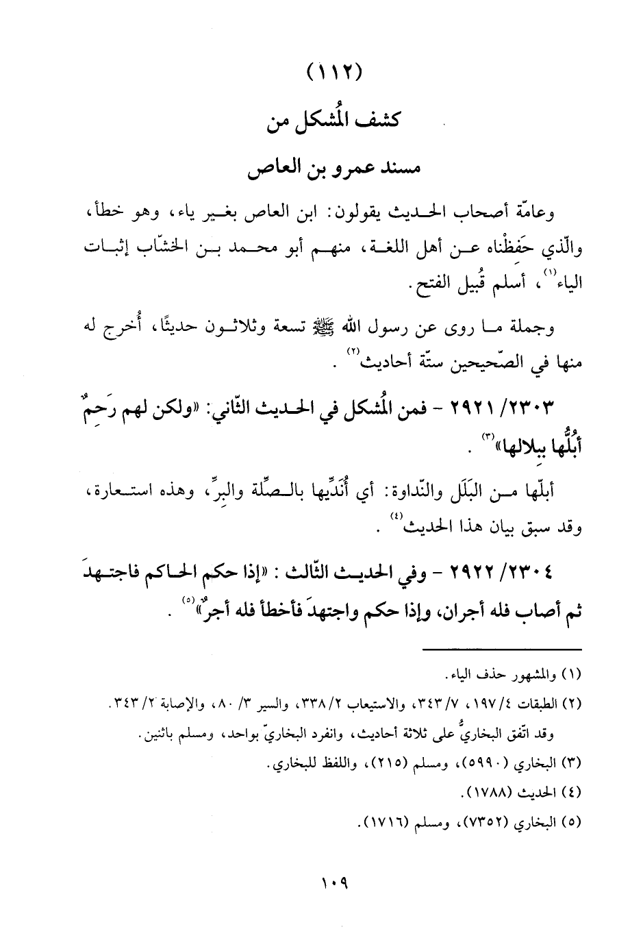 (112) كشف الْمُشكل من مُسْند عَمْرو بن الْعَاصِ