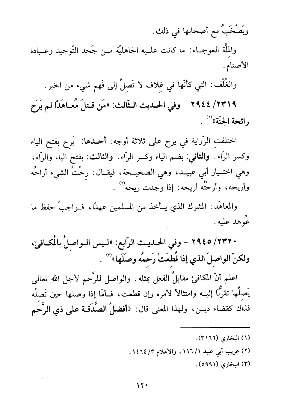 2319 - / 2944 - وَفِي الحَدِيث الثَّالِث: " من قتل معاهدا لم يرح رَائِحَة الْجنَّة ".