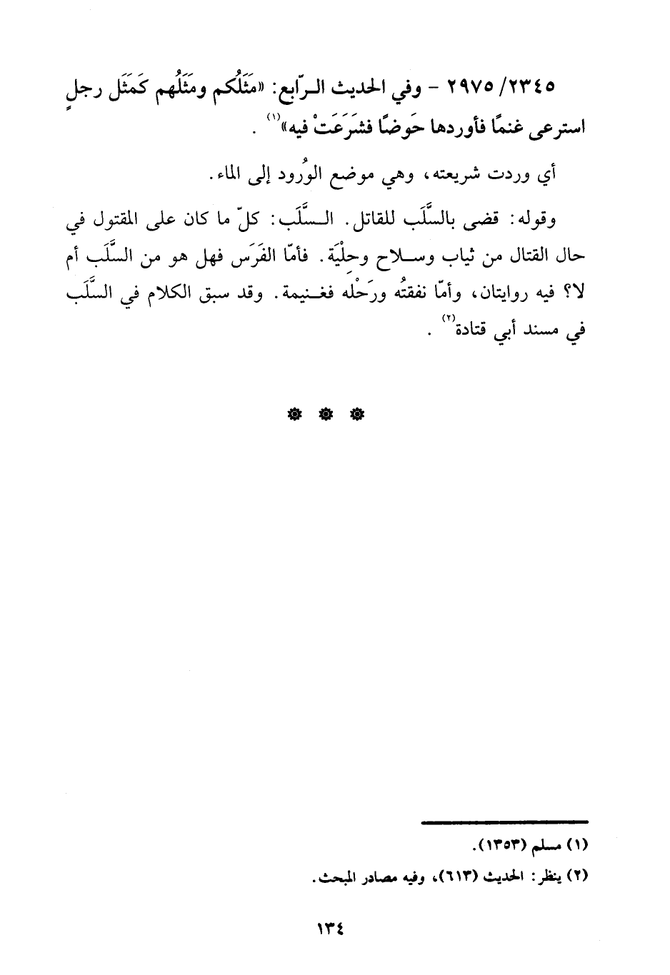 2345 - / 2975 - وَفِي الحَدِيث الرَّابِع: " مثلكُمْ وَمثلهمْ كَمثل رجل استرعى غنما فأوردها حوضا فشرعت فِيهِ ".