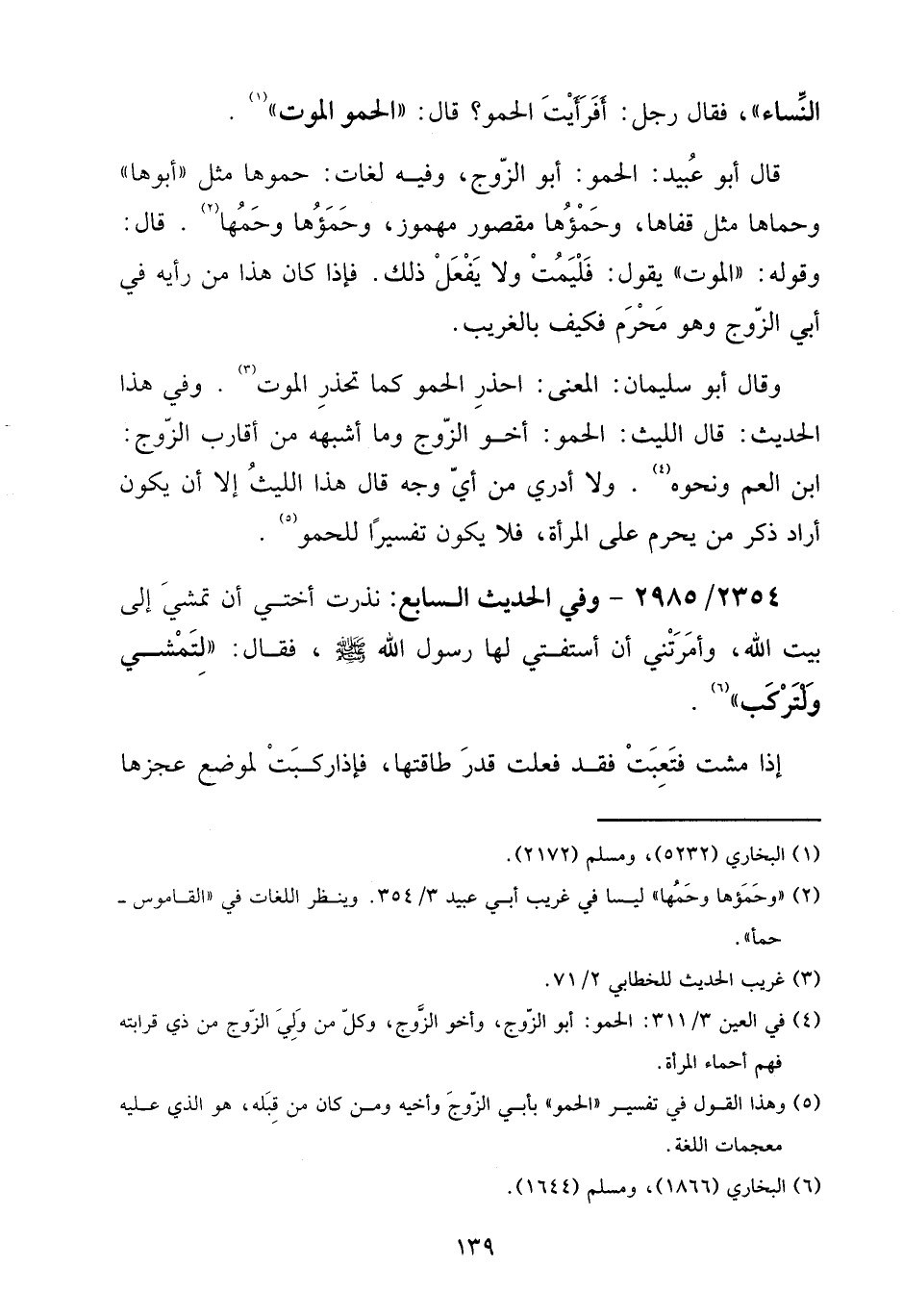 وَقَالَ أَبُو سُلَيْمَان: الْمَعْنى: احذر الحمو كَمَا تحذر الْمَوْت. وَفِي هَذَا الحَدِيث: قَالَ اللَّيْث: الحمو: أَخُو الزَّوْج وَمَا أشبهه من أقَارِب الزَّوْج: ابْن الْعم وَنَحْوه. وَلَا أَدْرِي من أَي وَجه قَالَ هَذَا اللَّيْث إِلَّا أَن يكون أَرَادَ ذكر من يحرم على الْمَرْأَة، فَلَا يكون تَفْسِيرا للحمو.