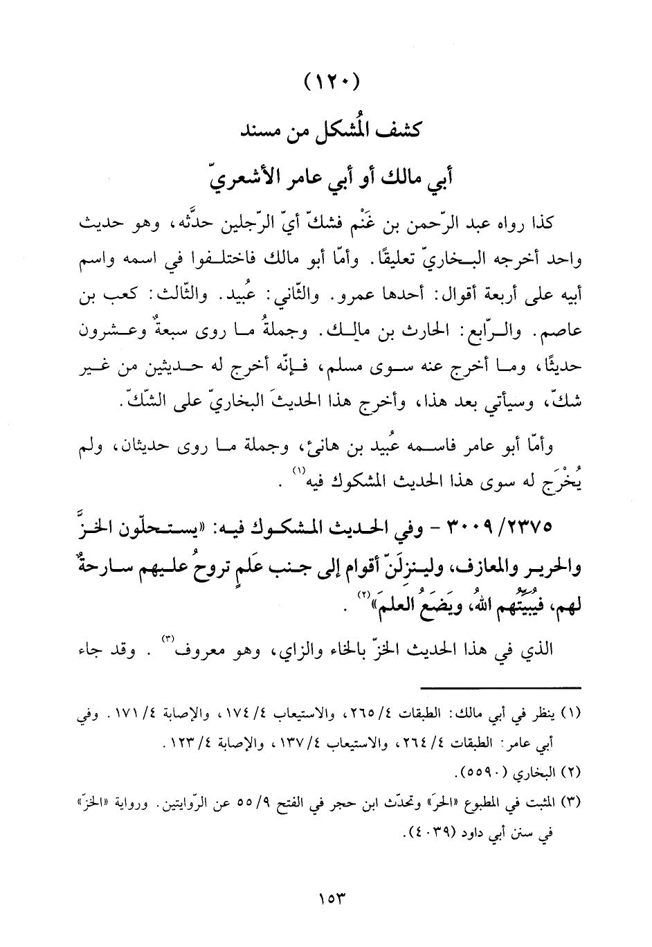 (120) كشف الْمُشكل من مُسْند أبي مَالك أَو أبي عَامر الْأَشْعَرِيّ