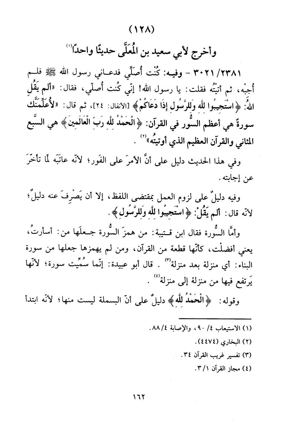 (128) وَأخرج لأبي سعيد بن الْمُعَلَّى حَدِيثا وَاحِدًا