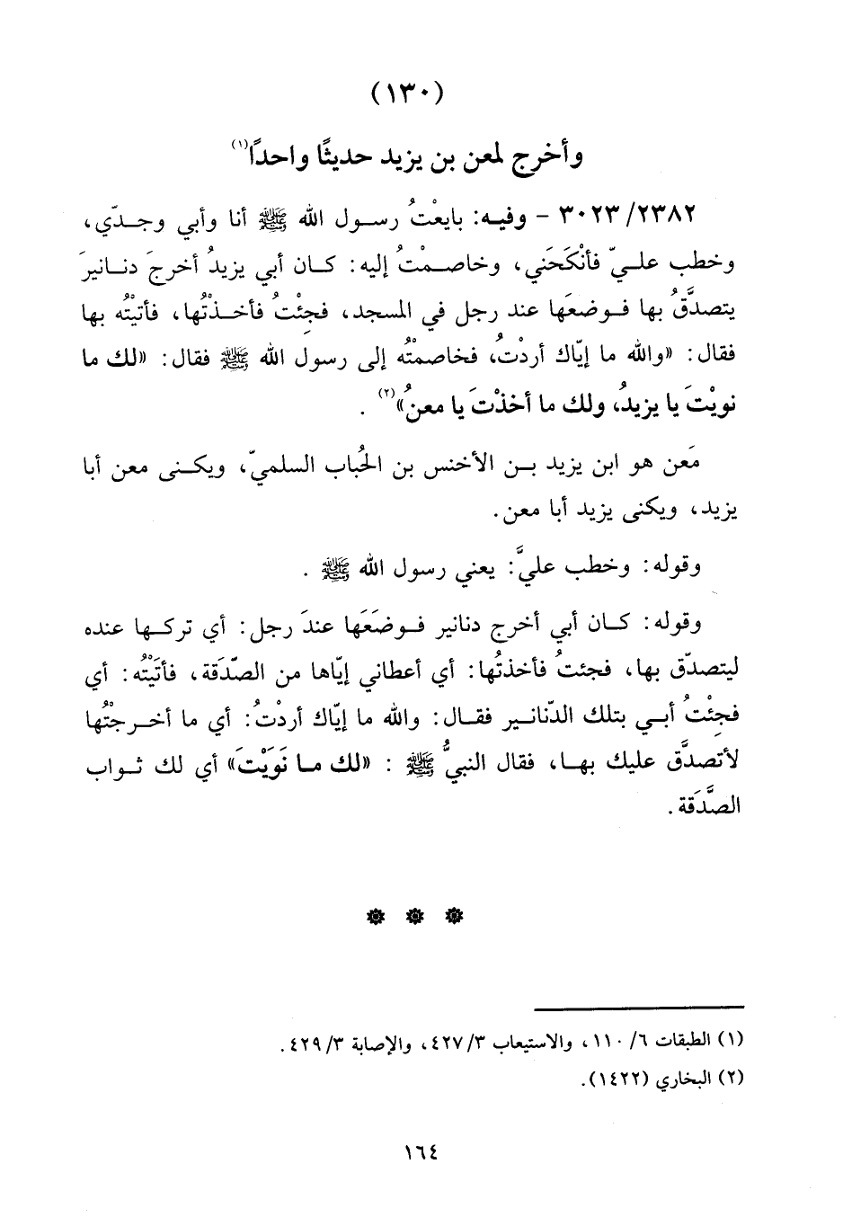 (130) وَأخرج لِمَعْنٍ بن يزِيد حَدِيثا وَاحِدًا