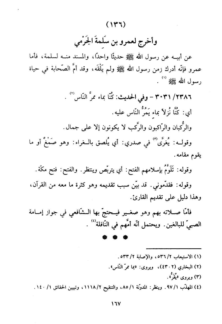 (136) وَأخرج لعَمْرو بن سَلمَة الْجرْمِي