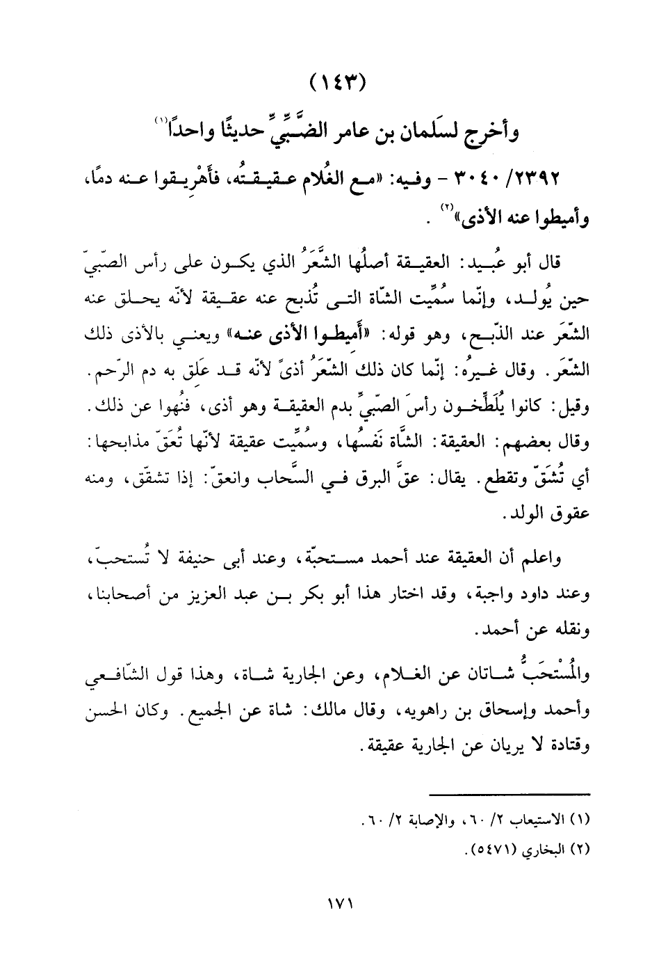 (143) وَأخرج لسلمان بن عَامر الضَّبِّيّ حَدِيثا وَاحِدًا