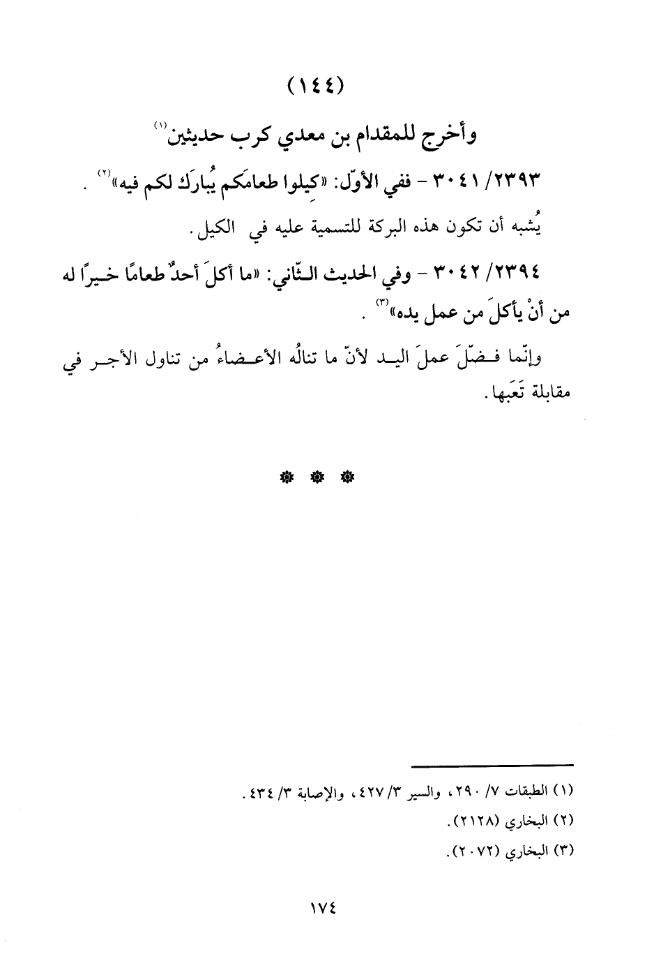 (144) وَأخرج للمقدام بن معدي كرب حديثين