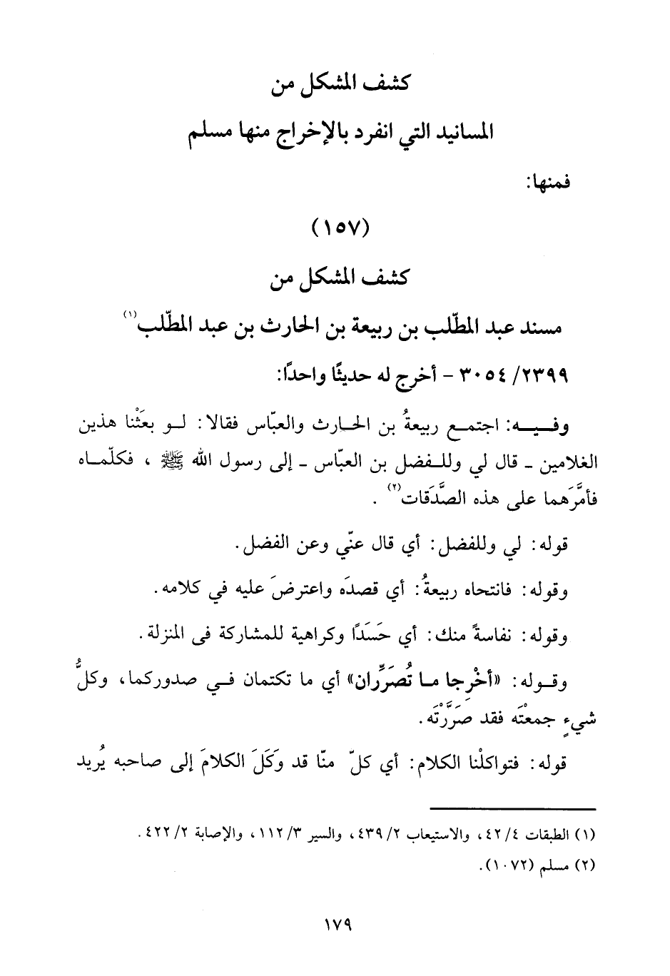 (157) كشف الْمُشكل من مُسْند عبد الْمطلب بن ربيعَة بن الْحَارِث بن عبد الْمطلب