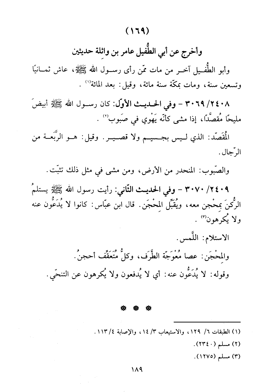 (169) وَأخرج عَن أبي الطُّفَيْل عَامر بن وَاثِلَة حديثين