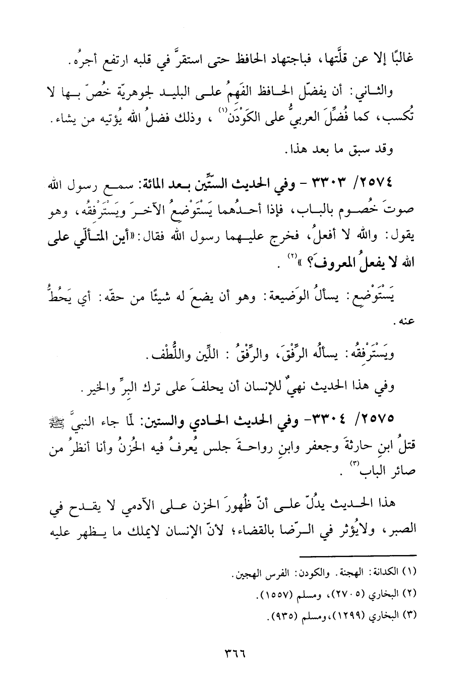 2575 - / 3304 - وَفِي الحَدِيث الْحَادِي وَالسِّتِّينَ: لما جَاءَ النَّبِي صلى الله عَلَيْهِ وَسلم قتل ابْن حَارِثَة وجعفر وَابْن رَوَاحَة جلس يعرف فِيهِ الْحزن وَأَنا أنظر من صائر الْبَاب.