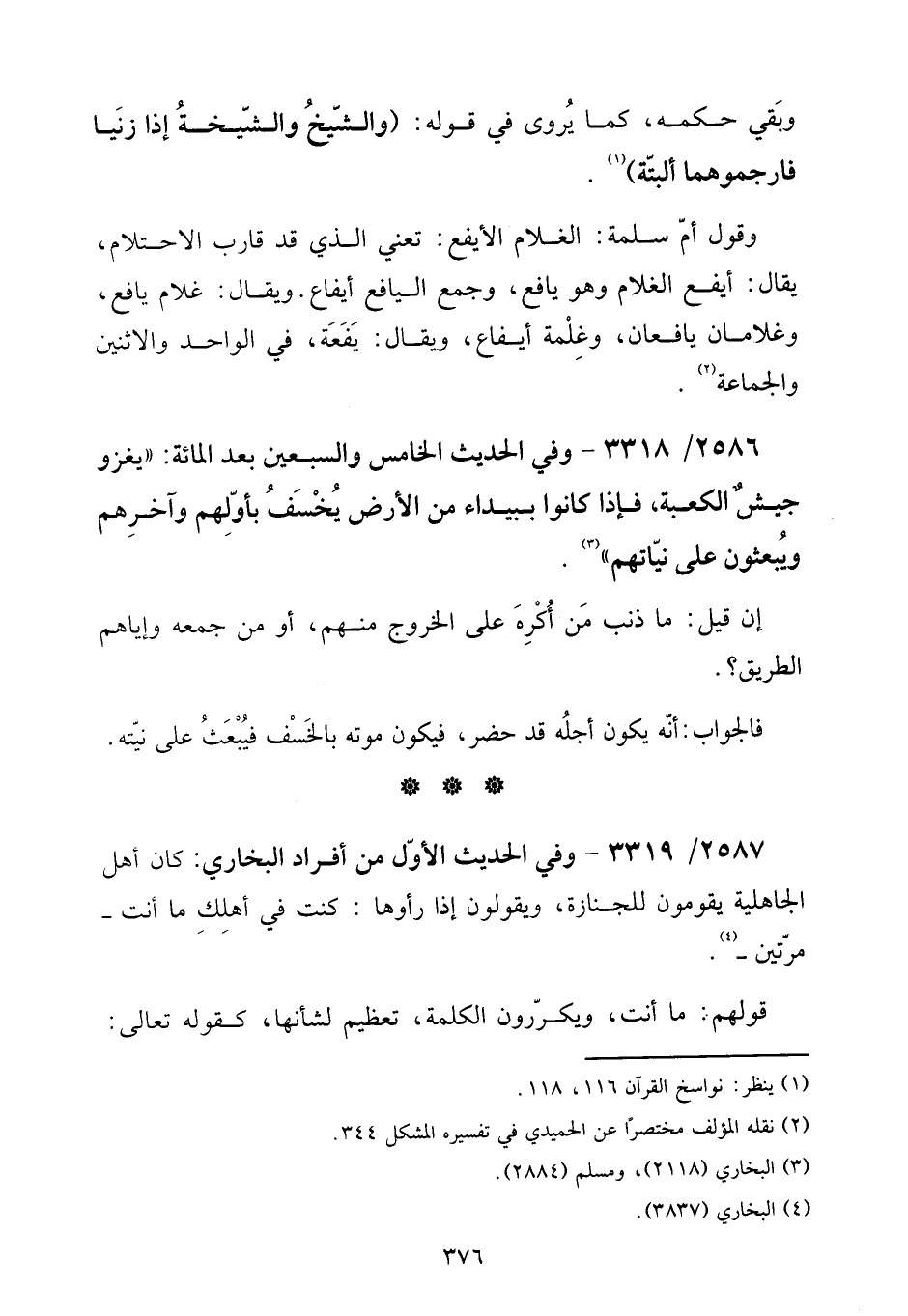 2587 - / 3319 - وَفِي الحَدِيث الأول من أَفْرَاد البُخَارِيّ: كَانَ أهل الْجَاهِلِيَّة يقومُونَ للجنازة، وَيَقُولُونَ إِذا رأوها: كنت فِي أهلك مَا أَنْت - مرَّتَيْنِ -.