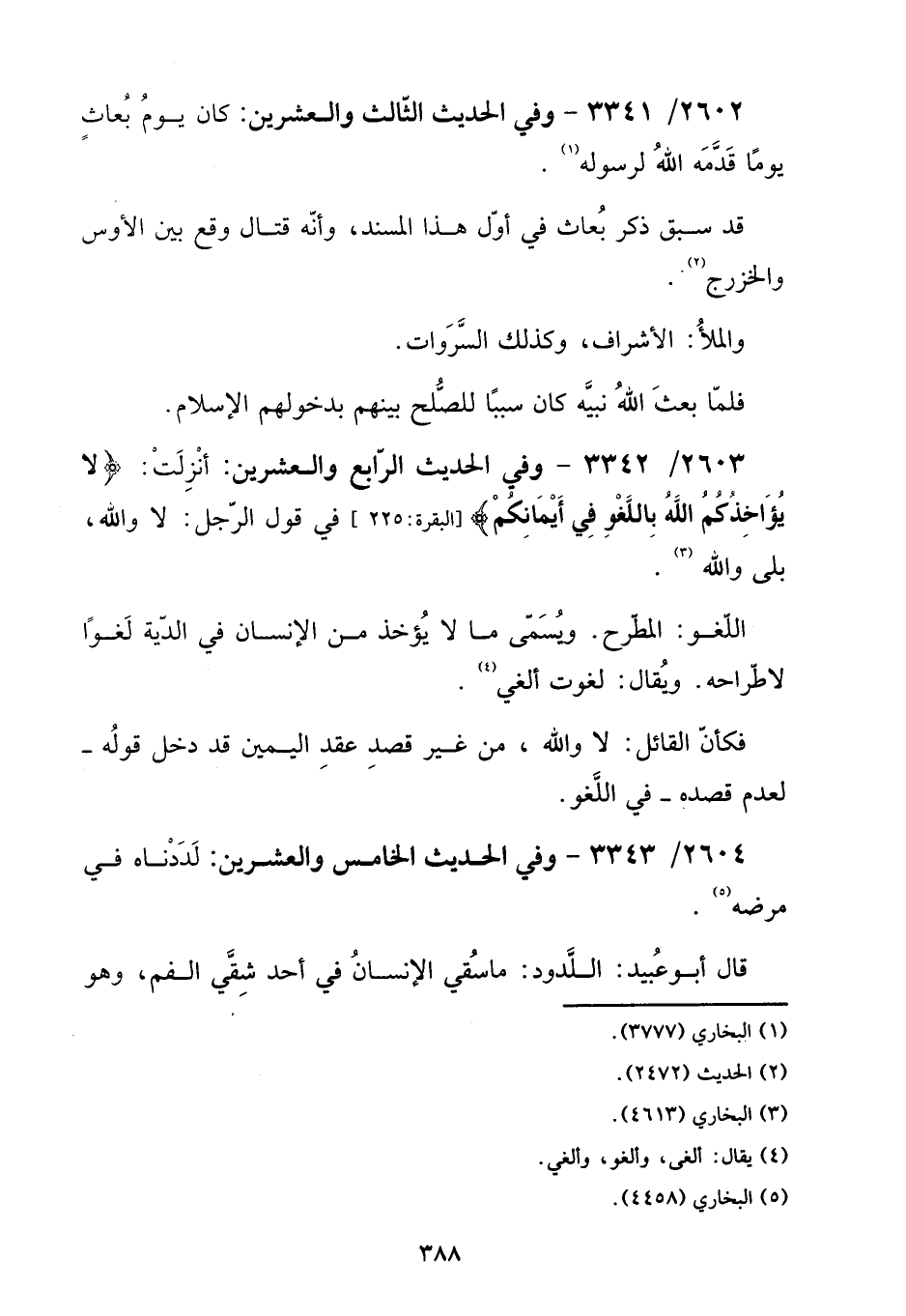 2602 - / 3341 - وَفِي الحَدِيث الثَّالِث وَالْعِشْرين: كَانَ يَوْم بُعَاث يَوْمًا قدمه الله لرَسُوله.