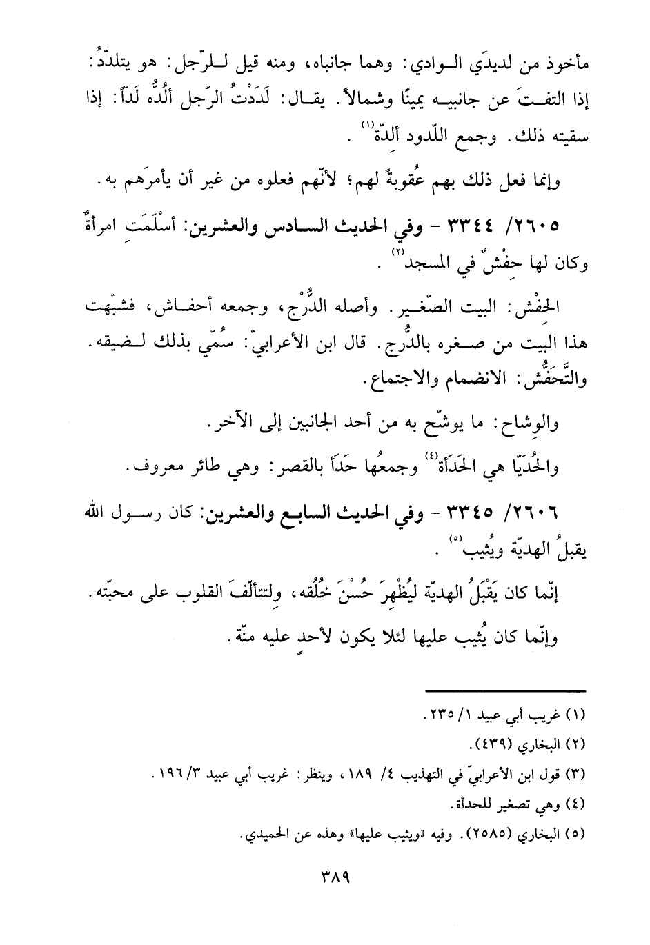 2605 - / 3344 - وَفِي الحَدِيث السَّادِس وَالْعِشْرين: أسلمت امْرَأَة وَكَانَ لَهَا حفش فِي الْمَسْجِد.