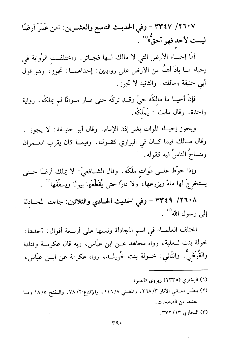 2607 - / 3347 - وَفِي الحَدِيث التَّاسِع وَالْعِشْرين: " من عمر أَرضًا لَيست لأحد فَهُوَ أَحَق ".