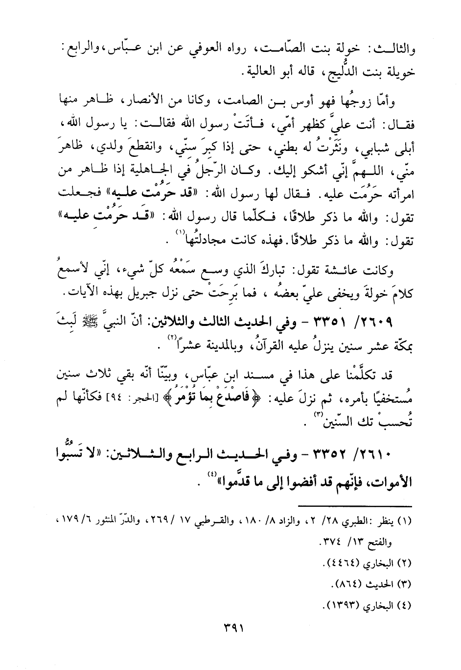 2609 - / 3351 - وَفِي الحَدِيث الثَّالِث وَالثَّلَاثِينَ: أَن النَّبِي صلى الله عَلَيْهِ وَسلم لبث بِمَكَّة عشر سِنِين ينزل عَلَيْهِ الْقُرْآن، وبالمدينة عشرا.