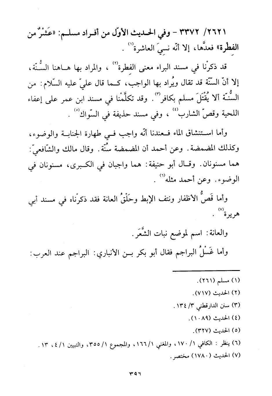 2621 - / 3372 - وَفِي الحَدِيث الأول من أَفْرَاد مُسلم: " عشر من الْفطْرَة " فَعَدهَا، إِلَّا أَنه نسي الْعَاشِرَة.