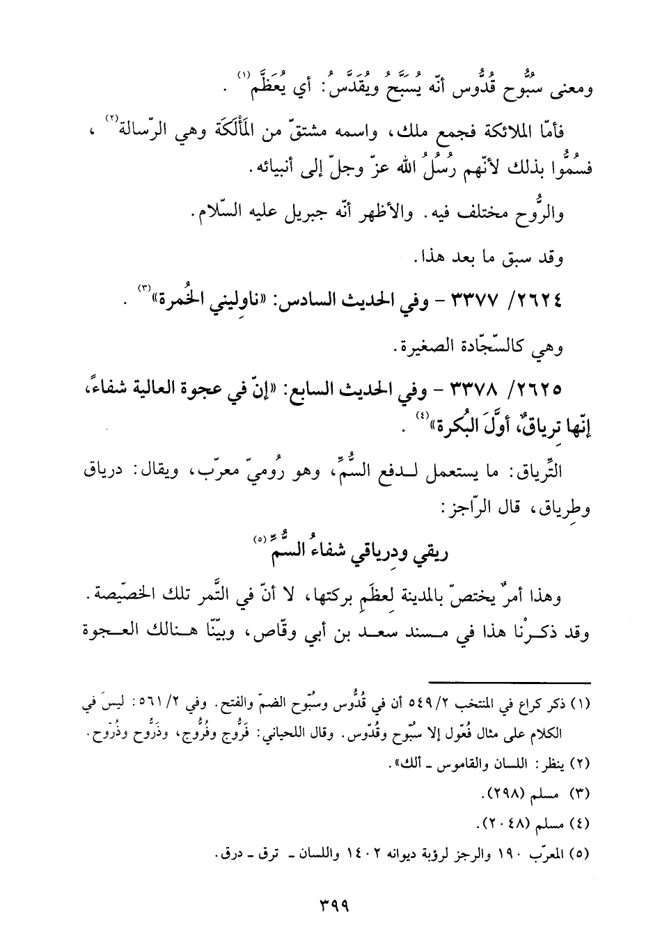 2625 - / 3378 - وَفِي الحَدِيث السَّابِع: " إِن فِي عَجْوَة الْعَالِيَة شِفَاء، إِنَّهَا ترياق، أول البكرة ".