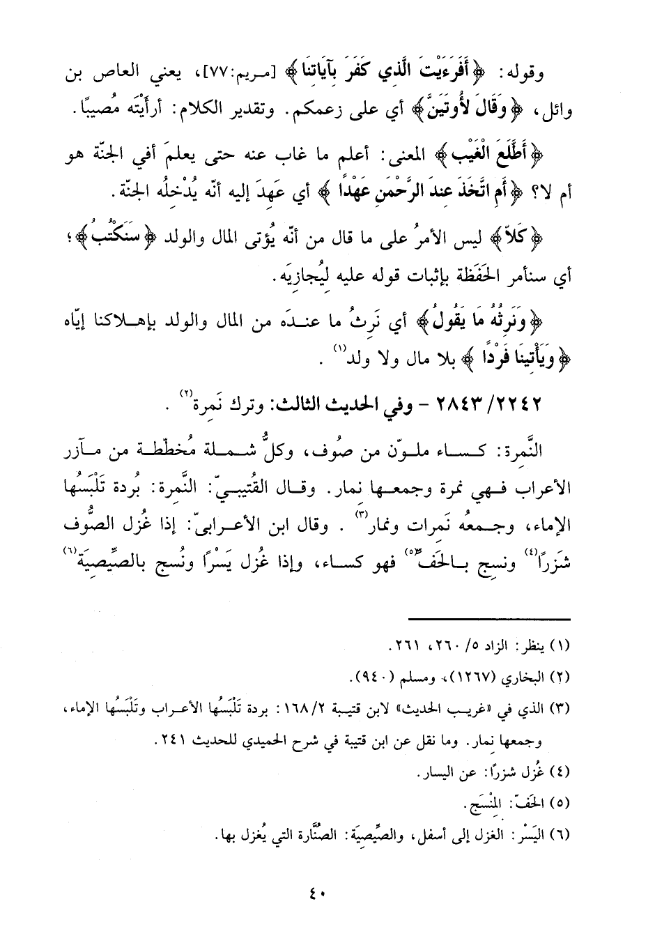 2242 - / 2843 - وَفِي الحَدِيث الثَّالِث: وَترك نمرة.