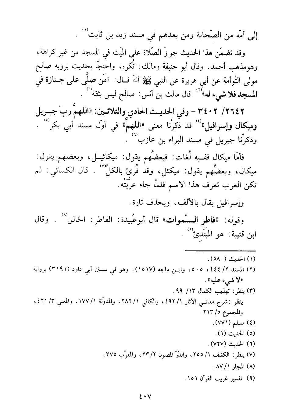 2642 - / 3402 - وَفِي الحَدِيث الْحَادِي وَالثَّلَاثِينَ: " اللَّهُمَّ رب جِبْرِيل وميكال وإسرافيل " قد ذكرنَا معنى " اللَّهُمَّ " فِي أول مُسْند أبي بكر. وَذكرنَا جِبْرِيل فِي مُسْند الْبَراء بن عَازِب.