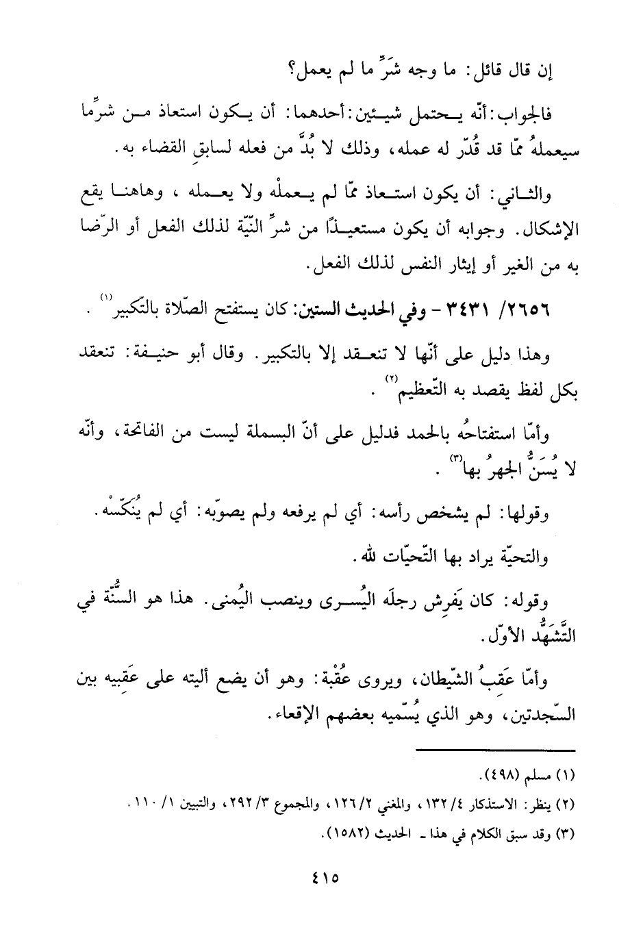 وَالثَّانِي: أَن يكون استعاذ مِمَّا لم يعمله وَلَا يعمله، وَهَاهُنَا يَقع الْإِشْكَال. وَجَوَابه أَن يكون مستعيذا من شَرّ النِّيَّة لذَلِك الْفِعْل أَو الرِّضَا بِهِ من الْغَيْر أَو إِيثَار النَّفس لذَلِك الْفِعْل.