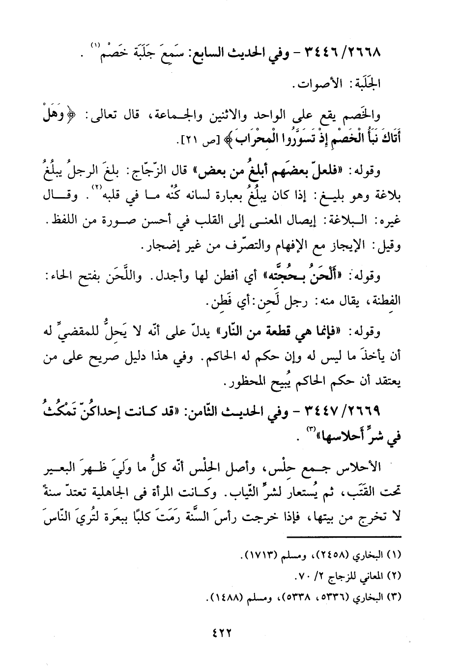2668 - / 3446 - وَفِي الحَدِيث السَّابِع: سمع جلبة خصم.