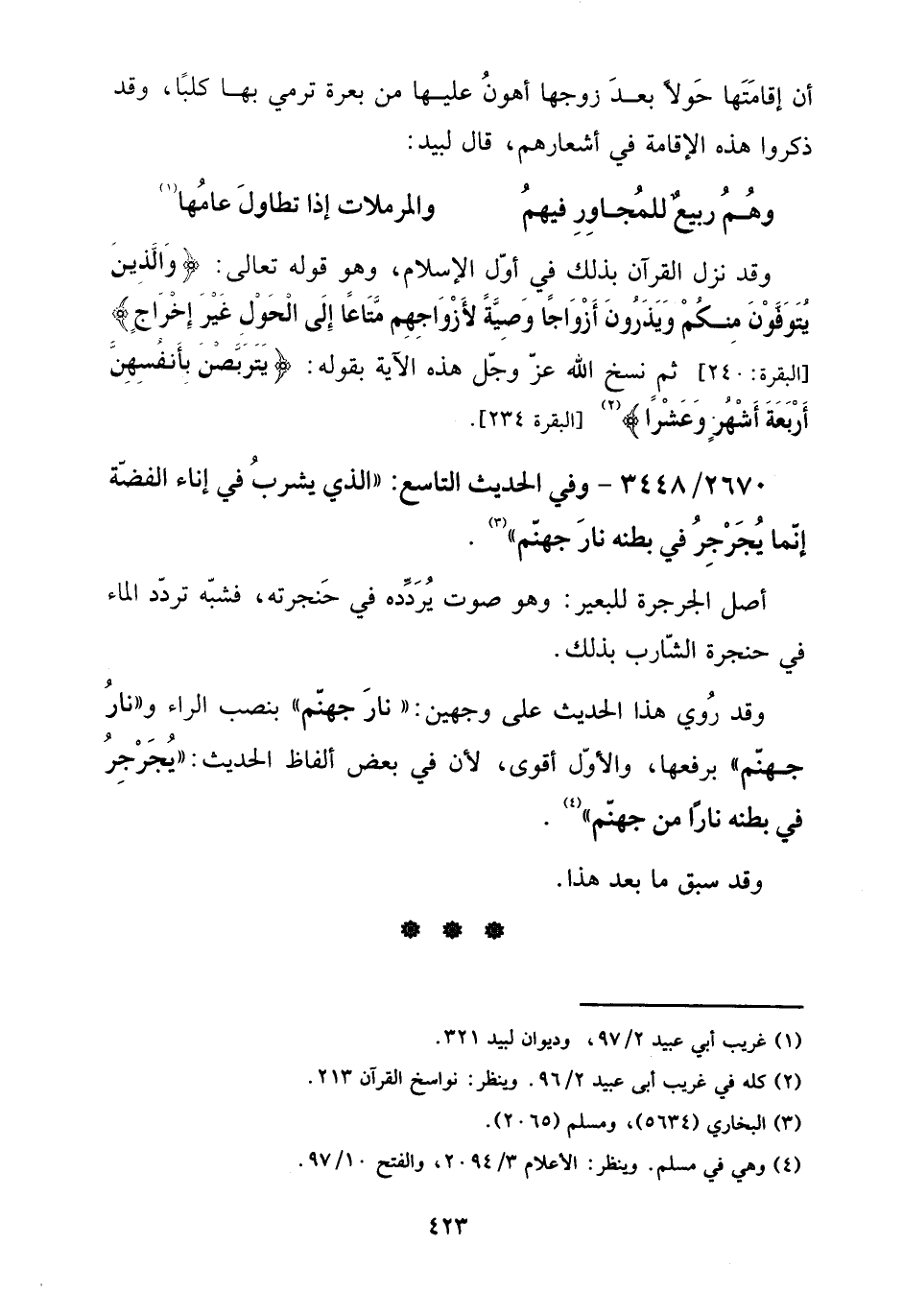 أَن إِقَامَتهَا حولا بعد زَوجهَا أَهْون عَلَيْهَا من بَعرَة ترمي بهَا كَلْبا، وَقد ذكرُوا هَذِه الْإِقَامَة فِي أشعارهم، قَالَ لبيد: