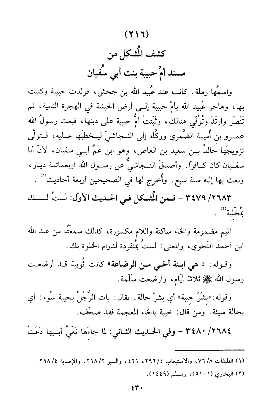 (216) كشف الْمُشكل من مُسْند أم حَبِيبَة بنت أبي سُفْيَان