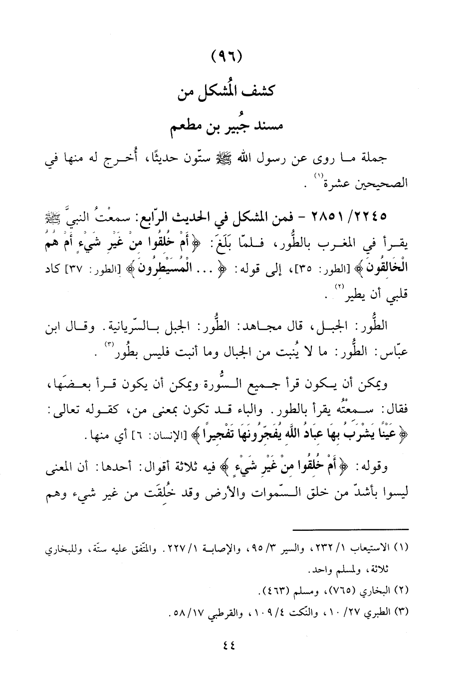 (96) كشف الْمُشكل من مُسْند جُبَير بن مطعم