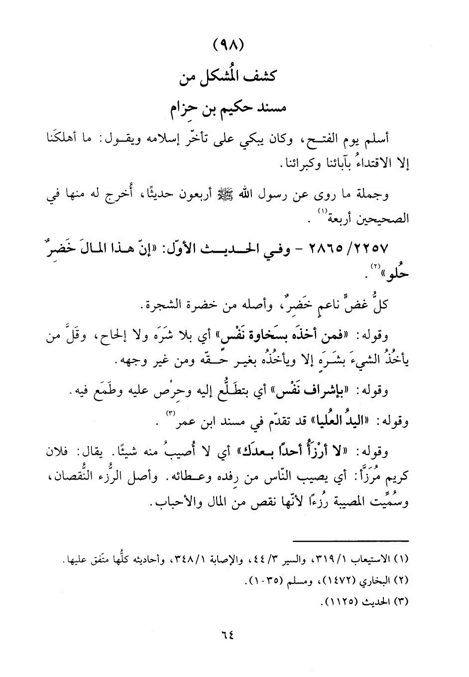 (98) كشف الْمُشكل من مُسْند حَكِيم بن حزَام
