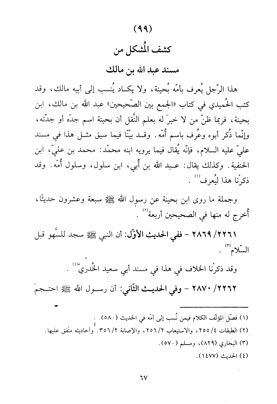 (99) كشف الْمُشكل من مُسْند عبد الله بن مَالك