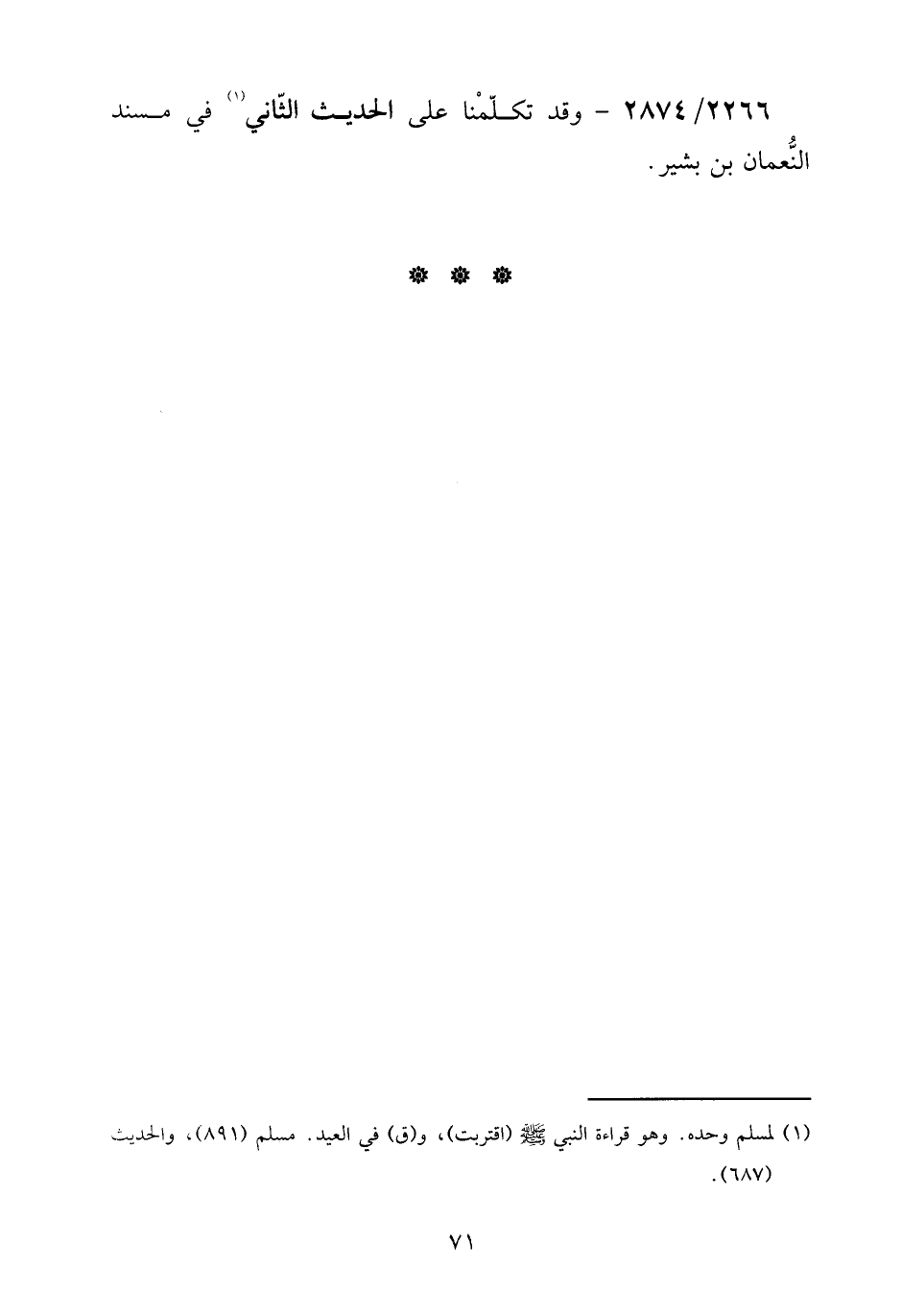2266 - / 2874 - وَقد تكلمنا على الحَدِيث الثَّانِي فِي مُسْند النُّعْمَان بن بشير.