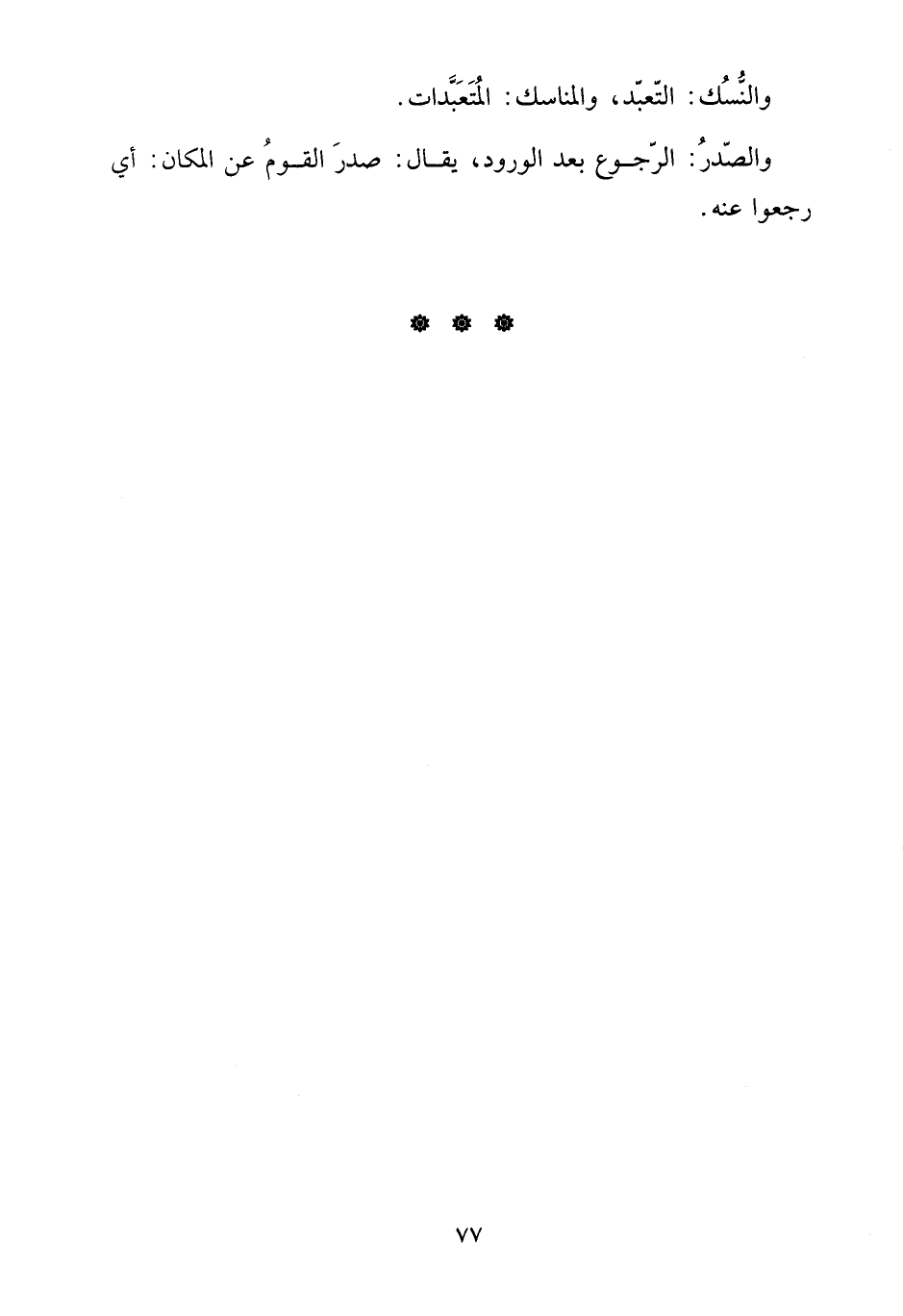 والصدر: الرُّجُوع بعد الْوُرُود، يُقَال: صدر الْقَوْم عَن الْمَكَان: أَي رجعُوا عَنهُ.