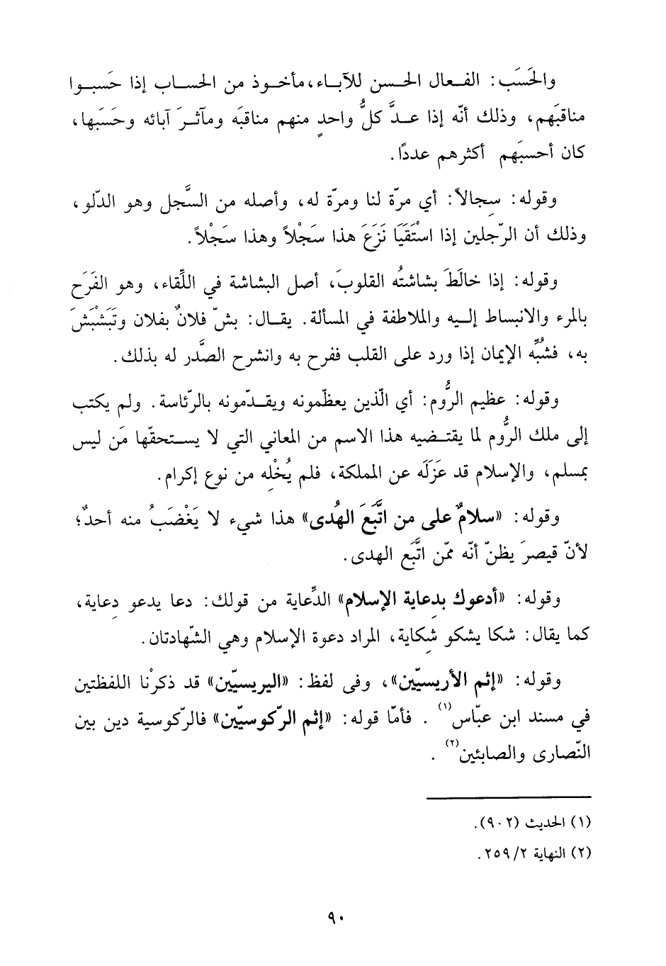 وَقَوله: " إِثْم الأريسيين "، وَفِي لفظ: " اليريسيين " قد ذكرنَا اللفظتين فِي مُسْند ابْن عَبَّاس. فَأَما قَوْله: " إِثْم الركوسيين " فالركوسية دين بَين النَّصَارَى وَالصَّابِئِينَ.