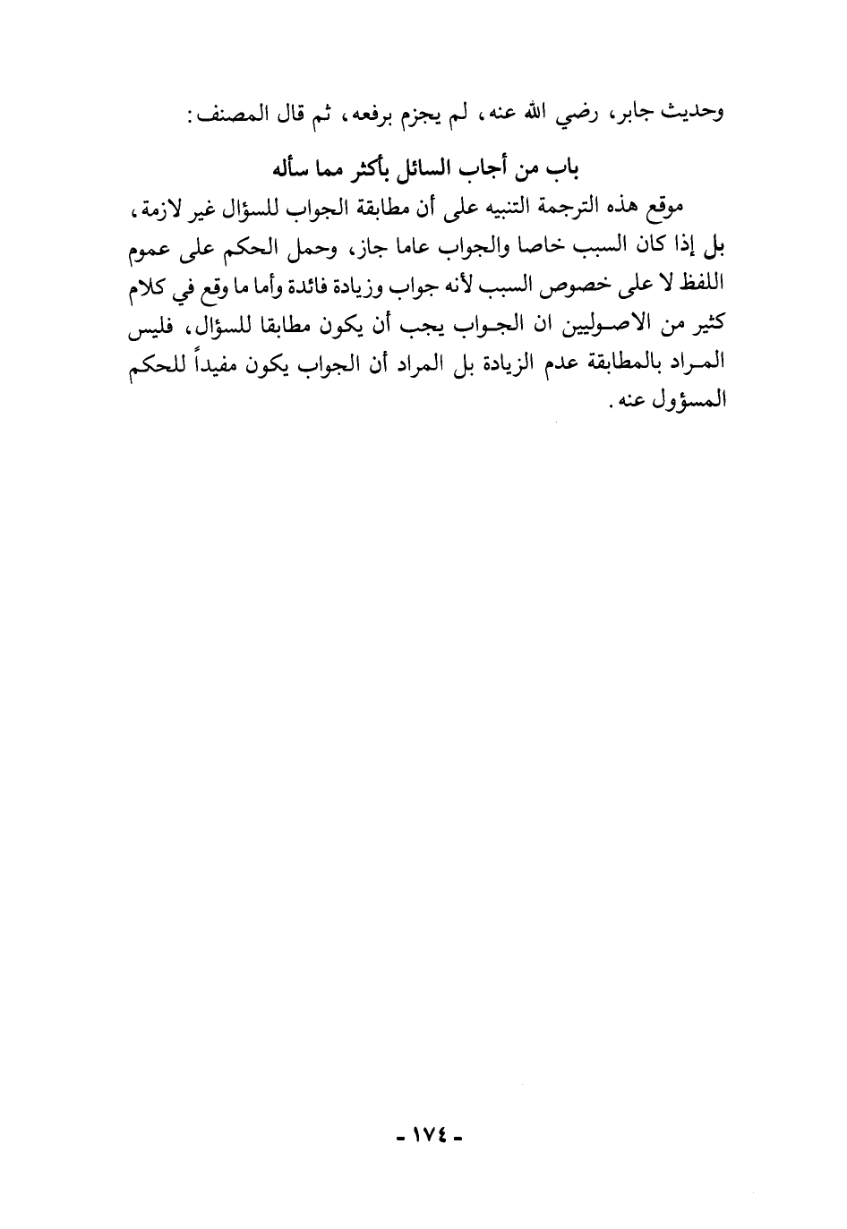 موقع هذه الترجمة التنبيه على أن مطابقة الجواب للسؤال غير لازمة، بل إذا كان السبب خاصا والجواب عاما جاز، وحمل الحكم على عموم اللفظ على خصوص السبب لأنه جواب وزيادة فائدة وأما ما وقع في كلام كثير من الاصوليين أن الجواب يجب أن يكون مطابقا للسؤال، فليس المراد بالمطابقة عدم الزيادة بل المراد أن الجواب يكون مفيدًا للحكم المسؤول عنه.