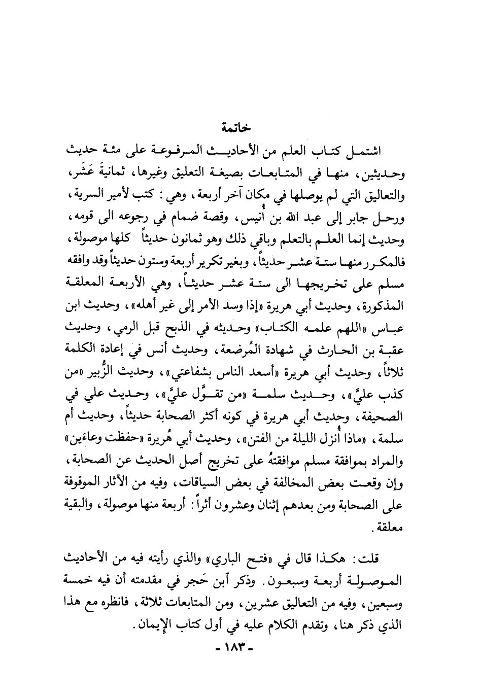 قلت: هكذا قال في "فتح الباري" والذي رأيته فيه من الأحاديث الموصولة أربعة وسبعون. وذكر آبن حَجر في مقدمته أن فيه خمسة وسبعين، وفيه من التعاليق عشرين، ومن المتابعات ثلاثة، فانظره مع هذا الذي ذكر هنا، وتقدم الكلام عليه في أول كتاب الإِيمان.