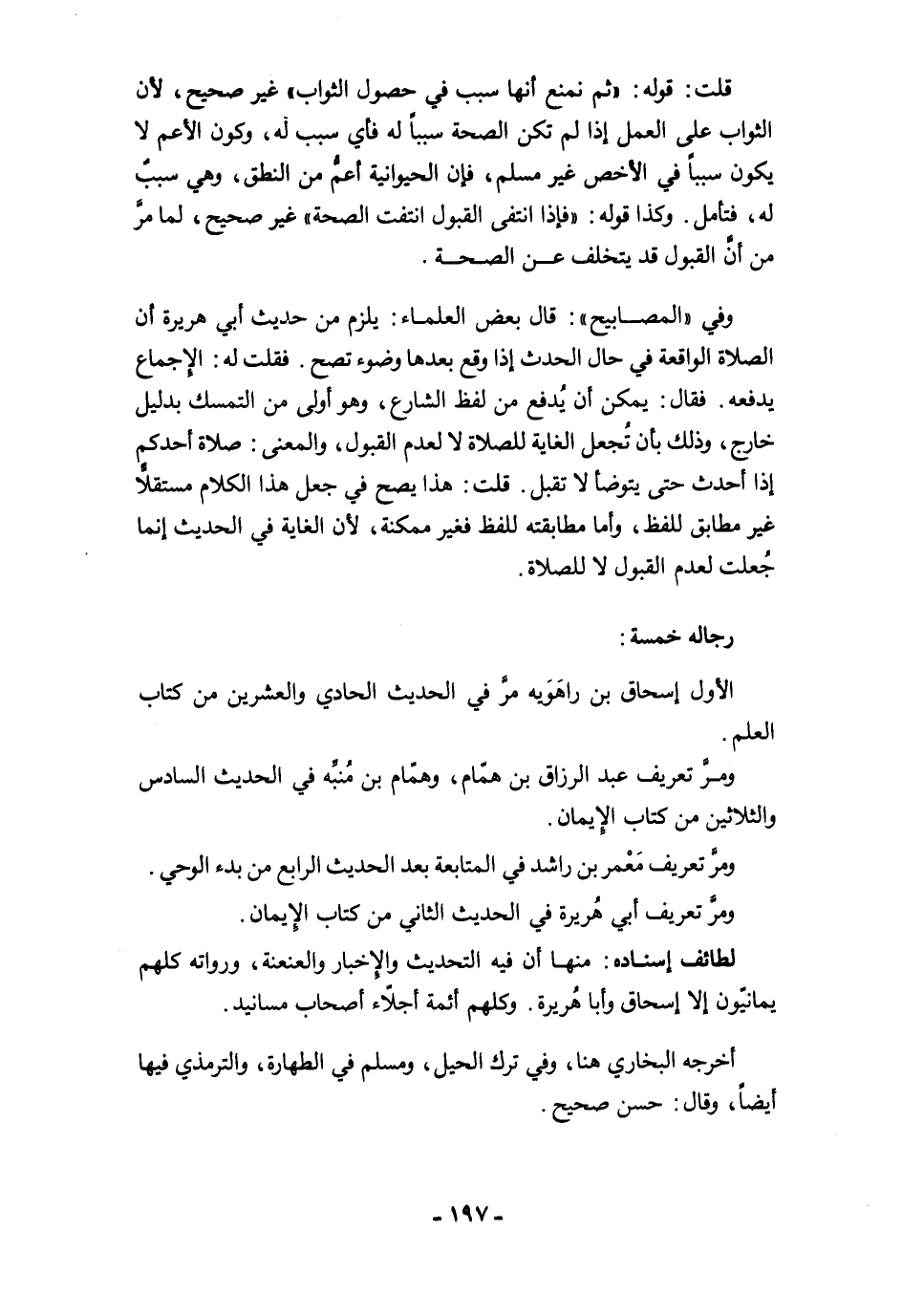 قلت: قوله: "ثم نمنع أنها سبب في حصول الثواب، غير صحيح, لأن الثواب على العمل إذا لم تكن الصحة سببًا له فأي سبب له، وكون الأعم لا يكون سببًا في الأخص غير مسلم، فإن الحيوانية أعمُّ من النطق، وهي سببٌ له، فتأمل. وكذا قوله: "فإذا انتفى القبول انتفت الصحة" غير صحيح، لما مرَّ من أنَّ القبول قد يتخلف عن الصحة.