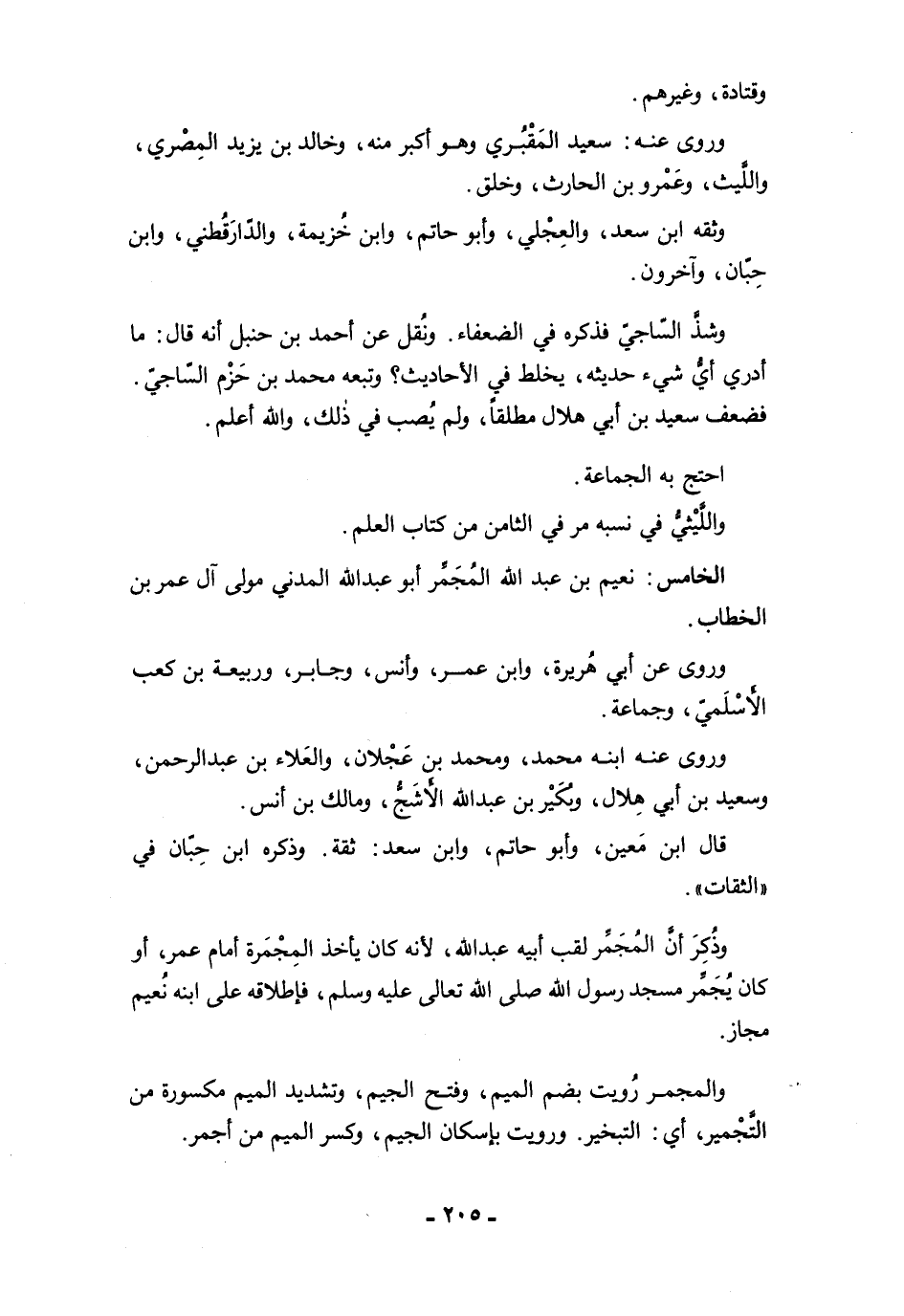 الخامس: نعيم بن عبد الله المُجَمِّر أبو عبد اللُه المدني مولى آل عمر بن الخطاب.