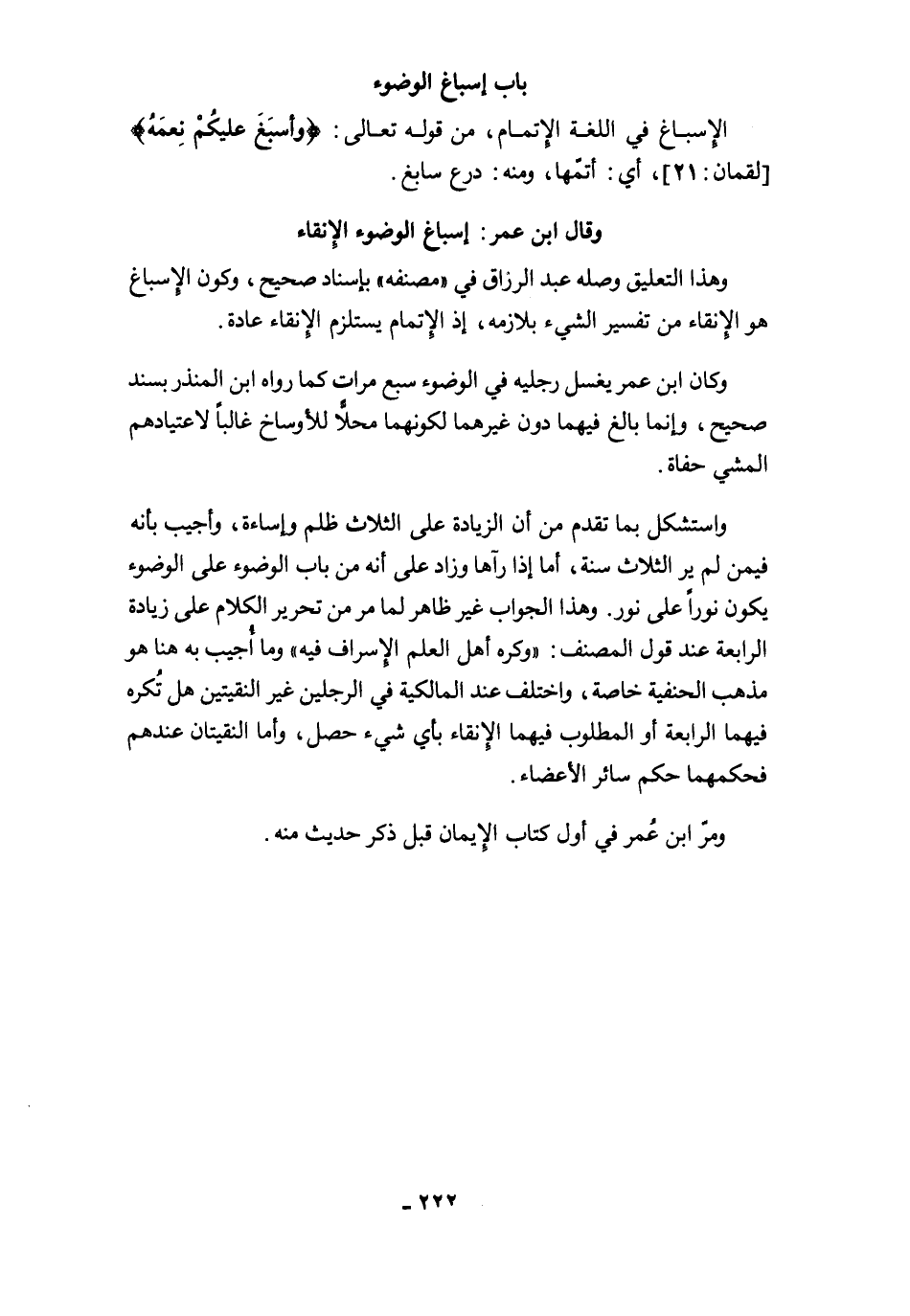 وهذا التعليق وصله عبد الرزاق في "مصنفه" بإسناد صحيح، وكون الإِسباغ هو الإِنقاء من تفسير الشيء بلازمه، إذ الإتمام يستلزم الإِنقاء عادة.