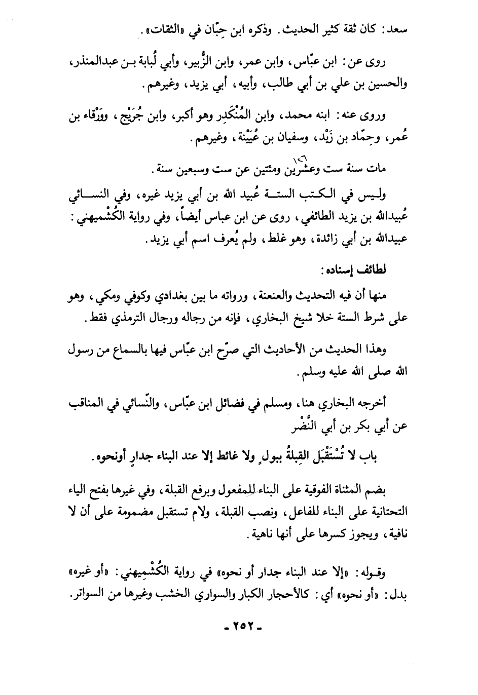 باب لا تُسْتَقْبَل القِبلةُ ببولٍ ولا غائط إلا عند البناء جدارٍ أو نحوه.