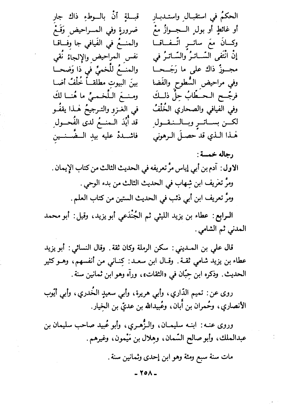لكن بساترٍ وبالنقولِ ... قد أُيِّدَ المنعُ لدى الفُحولِ
