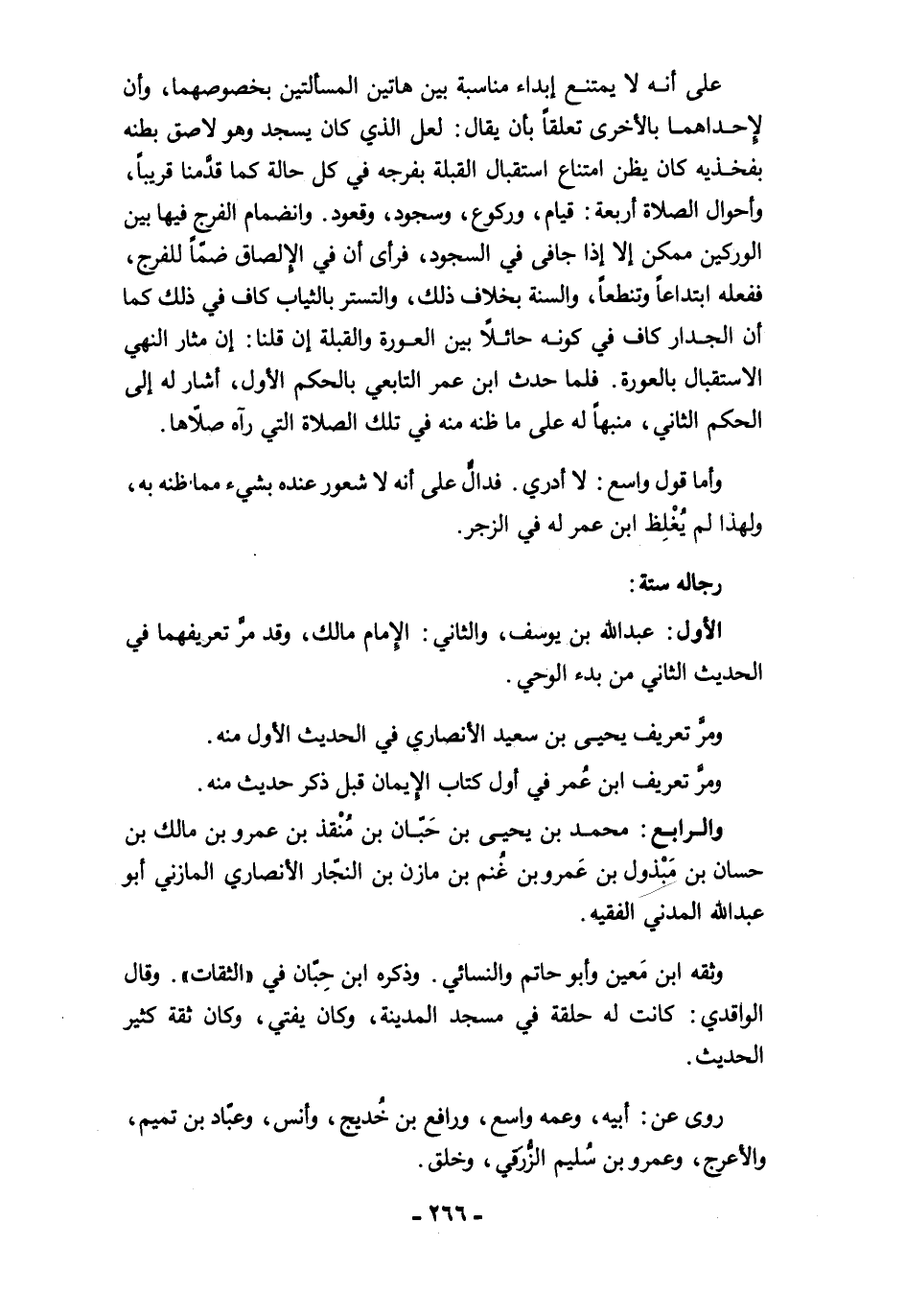 على أنه لا يمتنع إبداء مناسبة بين هاتين المسألتين بخصوصهما، وأن لإحداهما بالأخرى تعلقًا بأن يقال: لعل الذي كان يسجد وهو لاصق بطنه بفخذيه كان يظن امتناع استقبال القبلة بفرجه في كل حالة كما قدَّمنا قريبًا، وأحوال الصلاة أربعة: قيام، وركوع، وسجود، وقعود. وانضمام الفرج فيها بين الوركين ممكن إلا إذا جافى في السجود، فرأى أن في الإلصاق ضمًّا للفرج، ففعله ابتداعًا وتنطعًا، والسنة بخلاف ذلك، والتستر بالثياب كاف في ذلك كما أن الجدار كاف في كونه حائلًا بين العورة والقبلة إن قلنا: إن مثار النهي الاستقبال بالعورة. فلما حدث ابن عمر التابعي بالحكم الأول، أشار له إلى الحكم الثاني، منبهًا له على ما ظنه منه في تلك الصلاة التي رآه صلاّها.