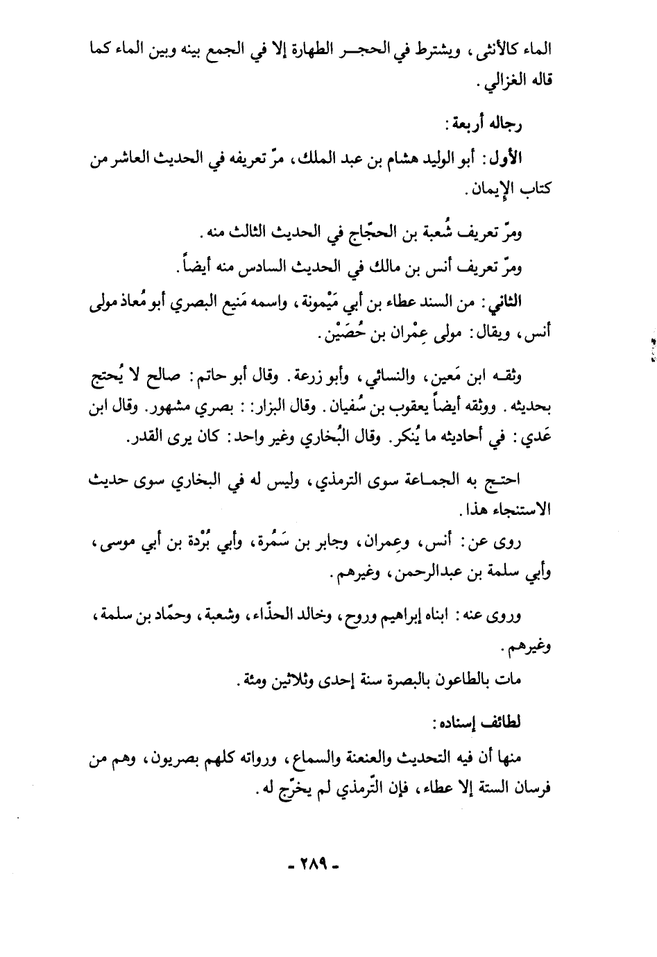 منها أن فيه التحديث والعنعنة والسماع، ورواته كلهم بصريون، وهم من فرسان الستة إلا عطاء، فإن التّرمذي لم يخرّج له.