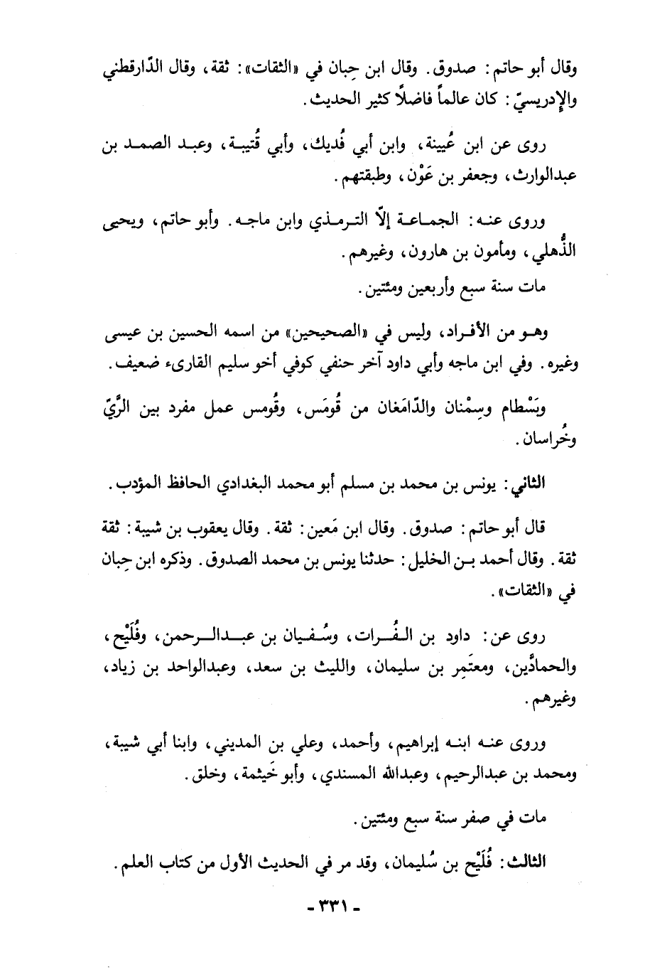 وقال أبو حاتم: صدوق. وقال ابن حِبان في "الثقات": ثقة، وقال الدَّارقطني والإدريسيّ: كان عالمًا فاضلًا كثير الحديث.
